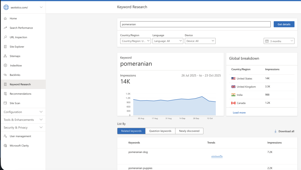 Speaking of which, BWT offers you a keyword research option, which is quite useful for broad topics: